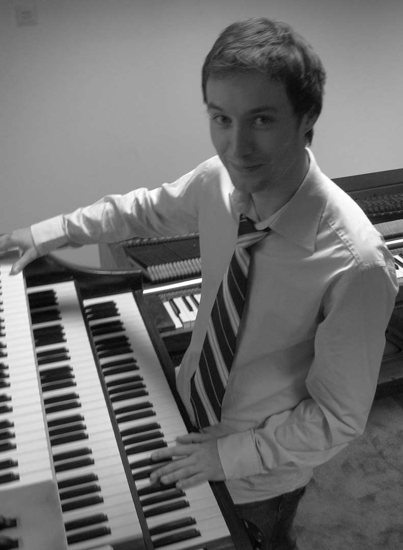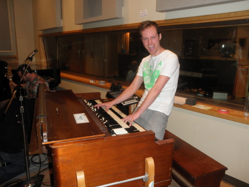 Hans de Wild in the studio, after winning the Six String Competition Award for best keyboardist.