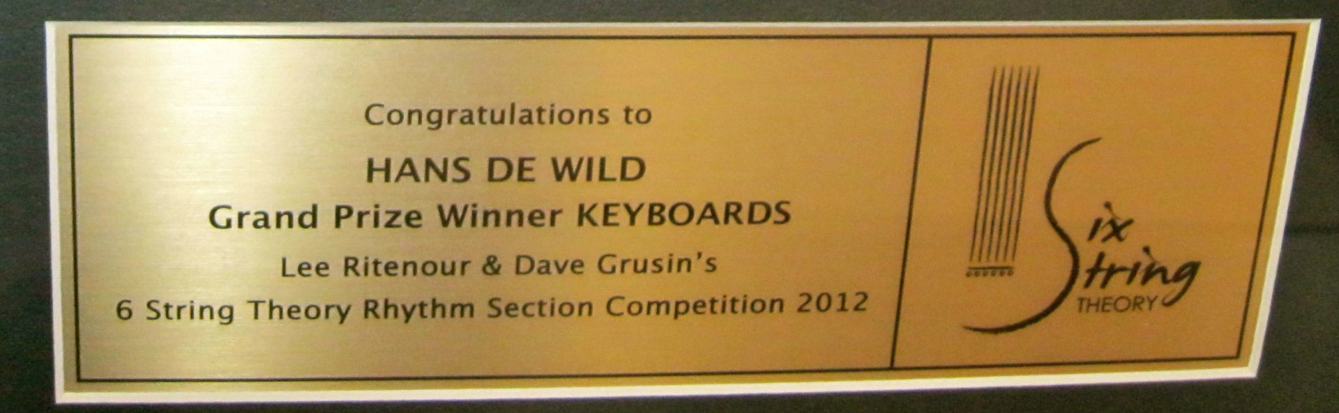 In 2012, Hans won the Grand Prize Winner Keyboards Award in the Six String Theory Competition.